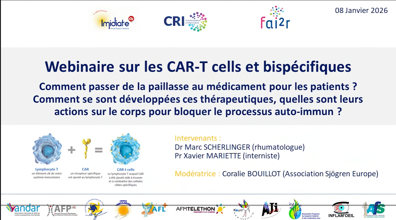 Retour sur le webinaire sur les CAR-T cells et bispécifiques : comment passer de la paillasse au médicament pour les patients ? Comment se sont développées ces thérapeutiques, quelles sont leurs actions sur le corps pour bloquer le processus auto-immun ? |